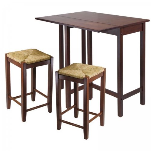 The Lynnwood High Table with Two Rush Seat Stools is compact and comfortable, the perfect small dining set for a studio, apartment or in the breakfast nook! Each piece is carefully crafted of solid wood with a rich antique walnut finish. Included with this small dinette set are two woven rush fiber stools and a breakfast table with drop leaf - great for use as a buffet when entertaining or for everyday dining at home! Table: 39.37"W x 30"D x 35.43"H Stools: 14"W x 14"D x 24"H Assembly level/degree of difficulty: Easy.