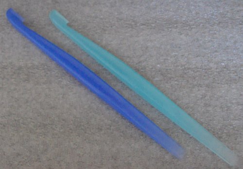 Tupperware brand citrus peelers have been making peeling fruits and veggies a breeze for generations. One each in beautiful sheer aqua and sheer blue color. Measures 6 1/4" long. Convenient size for the lunch box, brief case, purse, office desk, kitchen drawer. A must have if you've ever used one of these! These make wonderful stocking stuffers for Christmas!